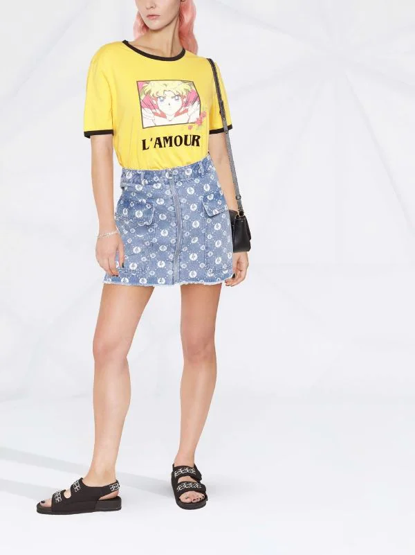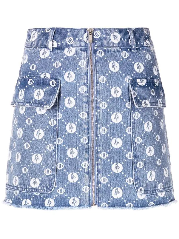 Grafischer Print, Vordertaschen mit Klappe, Reißverschluss vorne. Farbe: Blau. Material: Baumwolle.