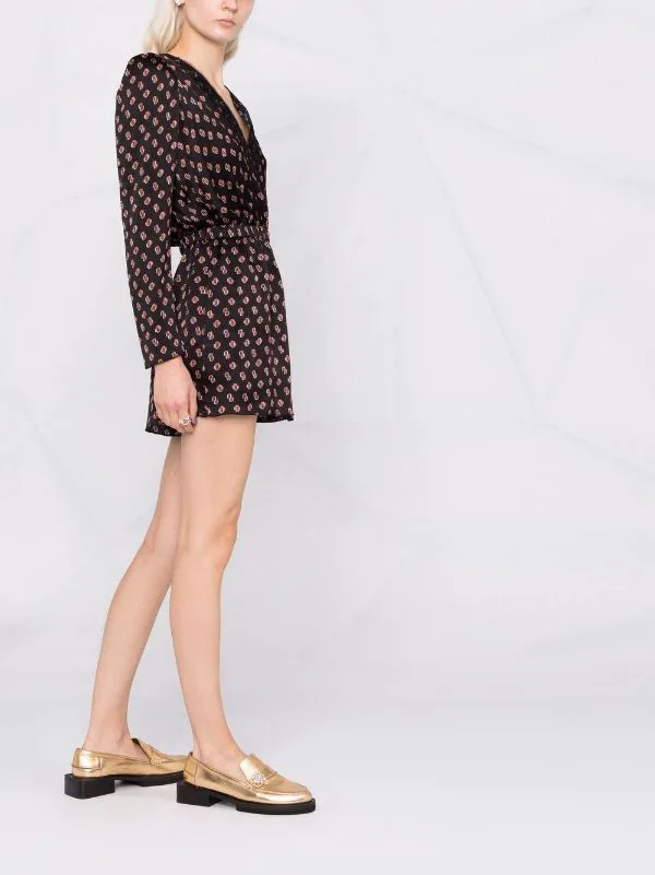 Geometrischer Print, Details aus Spitze, V-Ausschnitt, elastischer Bund, Knopfverschluss hinten, lange Ärmel, zwei Eingrifftaschen an der Seite, oberschenkellang. Material: Seide.
